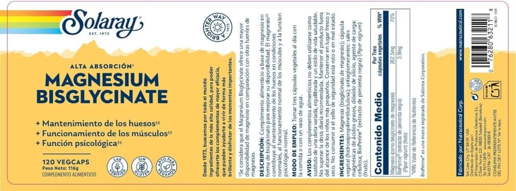 El Solaray Magnesio Bisglycinato es un suplemento de magnesio bien formulado que puede ser útil si buscas:
