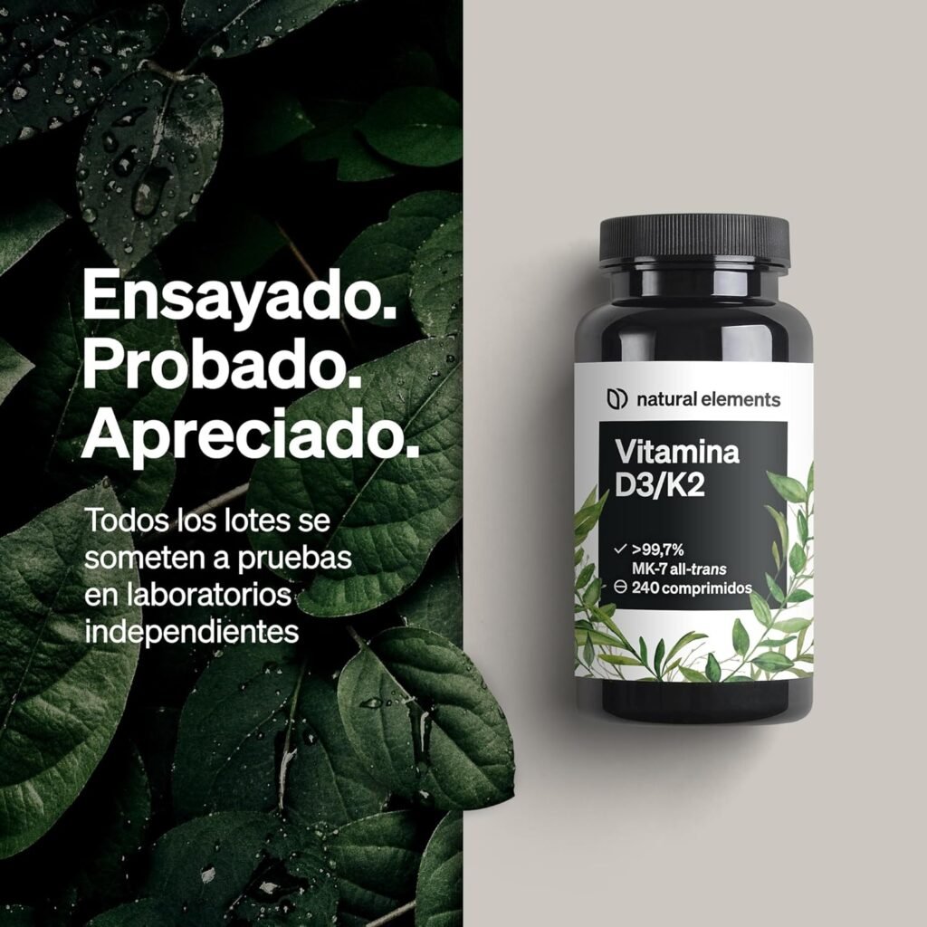| Natural Elements | Vitamina D3 + K2 (MK-7 all-trans ≥99,7%) 2000 UI + 100 µg | Personas que quieren apoyo para huesos, dientes y sistema inmunitario | 👉 Ver en Amazon |